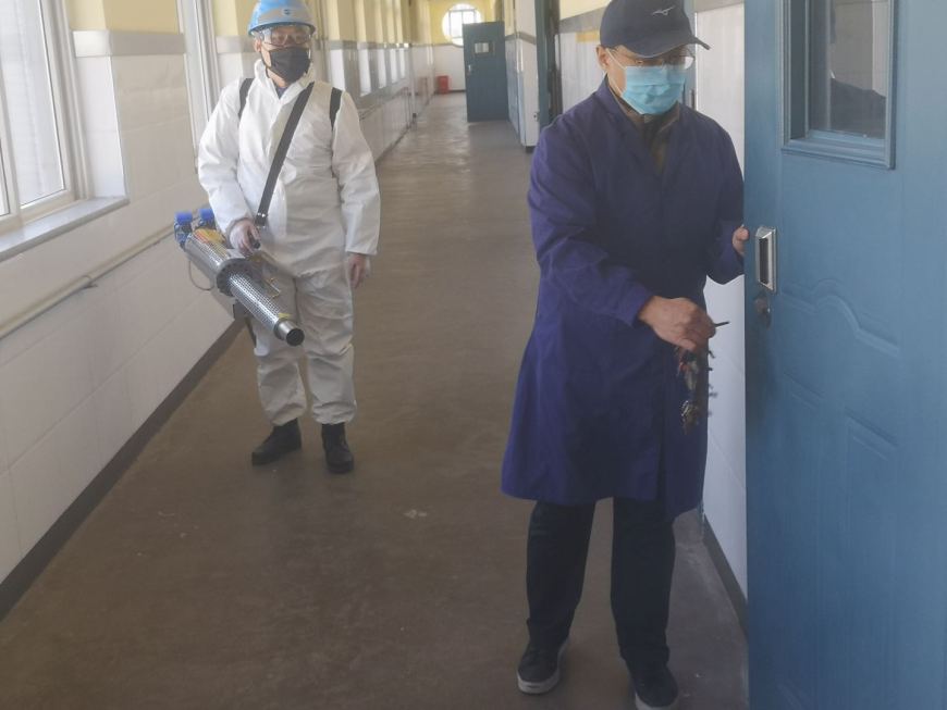 5.刘铁峰副校长与总务、教务主任多次到校落实防控物资和消毒测温等工作,同时协助学校领导到家属院安排、处理了“家属院门口的值班、测量出入人员体温”等问题,协助教育处完善学生和班级的日常钉钉打卡工作,为教学处线上学习提供技术上的支持。