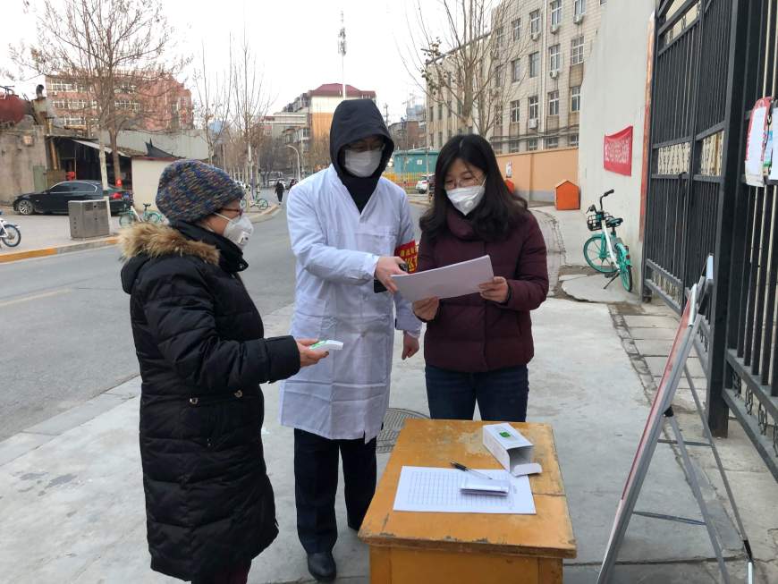 2、在疫情防控的关键时刻,我校党员教师、志愿者挺身而出,冲锋在前,以初心和使命的自觉行动,做无声而有力的引领。曲铁柱、魏淑敏、高松梅以及詹海燕等多位教师主动到所在社区参加志愿者服务活动,他们帮助社区工作人员给小区居民测量体温并做好疫情防护的义务宣传。