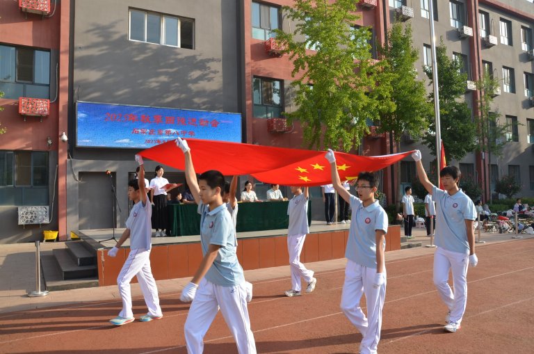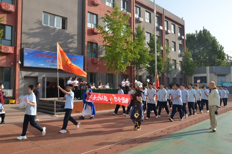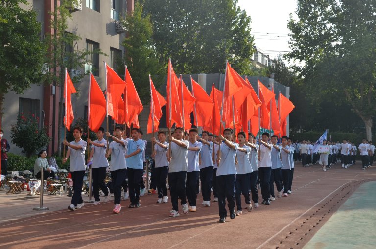 开幕式上,伴着激昂的乐曲,各方阵整齐入场。国旗方阵率先登场,护旗手步伐铿锵,五星红旗引领全场,凝聚着爱国情怀。花束队手捧缤纷花束,旗林队红旗猎猎;各班方阵依次亮相,从整齐队列到嘹亮口号,从坚定眼神到自信笑容,都诠释着属于他们的青春力量。