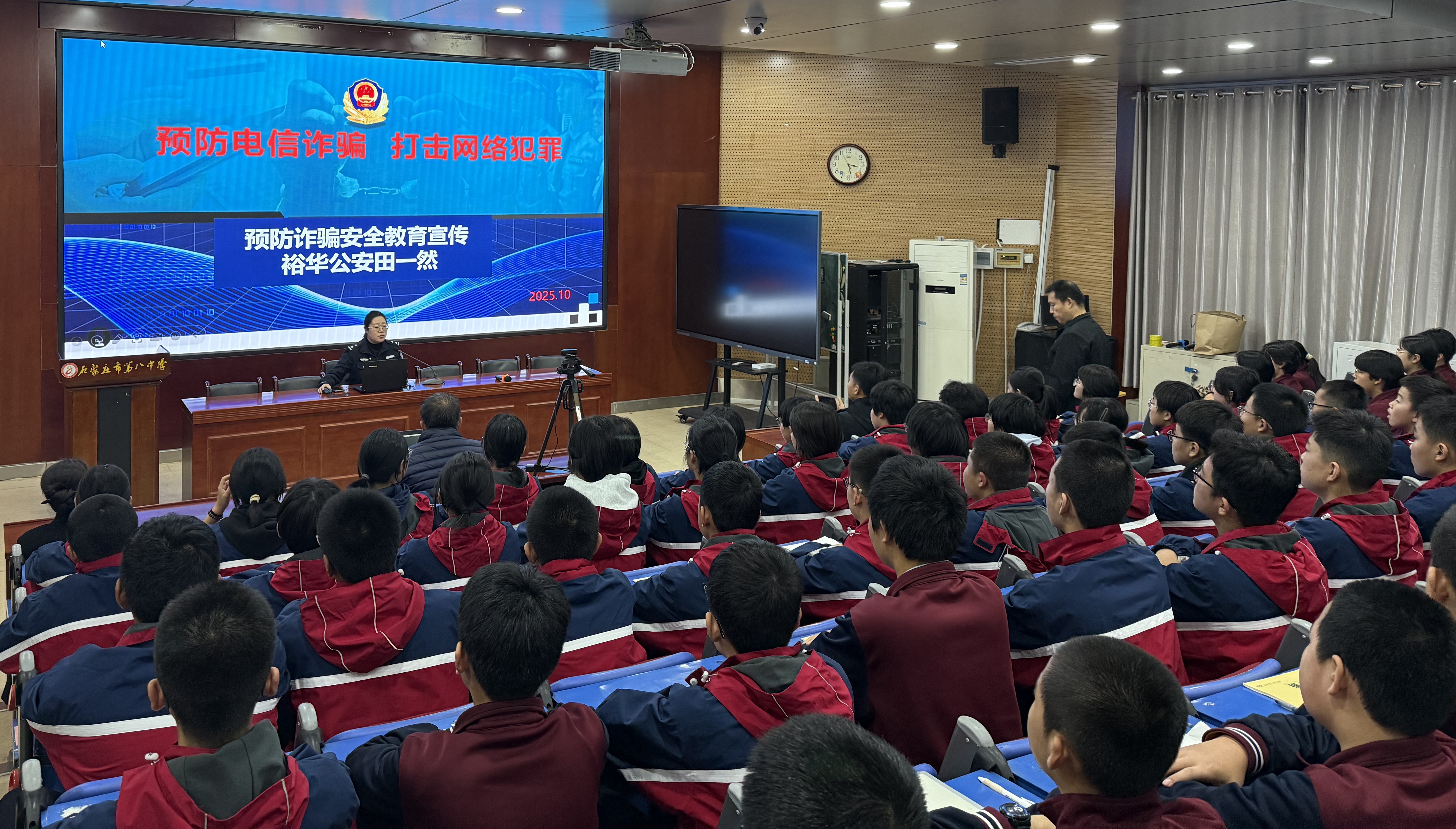 为了让“反欺凌、防诈骗”的意识扎根在每个人心里,共同打造“零欺凌、无诈骗、有温度”的校园环境,2025年10月30日,裕华区法学会联合裕华公安分局、裕华区检察院、裕华区司法局在石家庄市第八中学共同开展了“反诈防欺 护航少年成长”法治宣讲系列活动,为同学们带来了一堂生动实用的法治教育课。